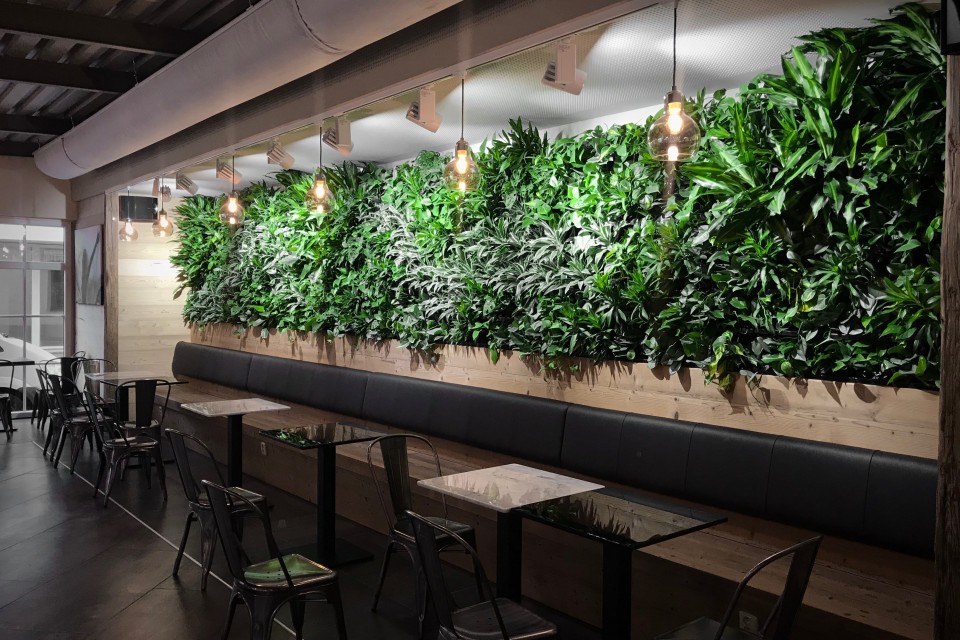 Dodání vertikální zahrady FlowerWALL 850x150cm, napojení na vodovodní řad a odpad, dodání speciálního LED grow osvětlení.