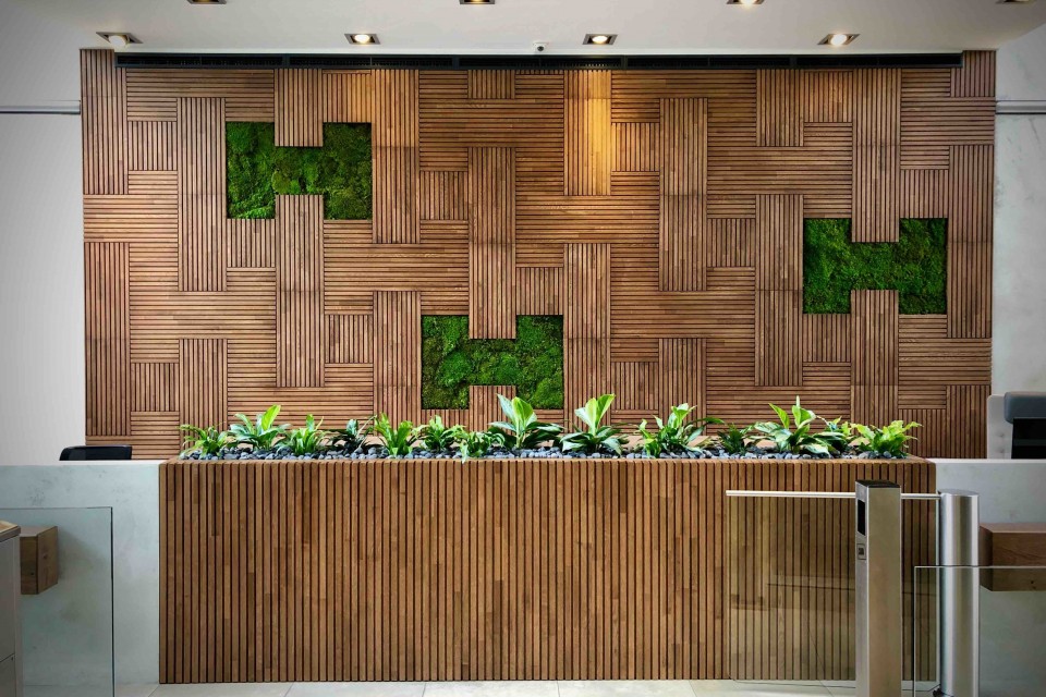 Návrh a osazení květníků hydroponickými rostlinami Chrysolidocarpus Lutescence, Monstera Deliciosa, Dracaena Surluclosa, Asplenium, Aglaonema atd. Výroba a dodání mechových prvků z konzervovaného mechu.