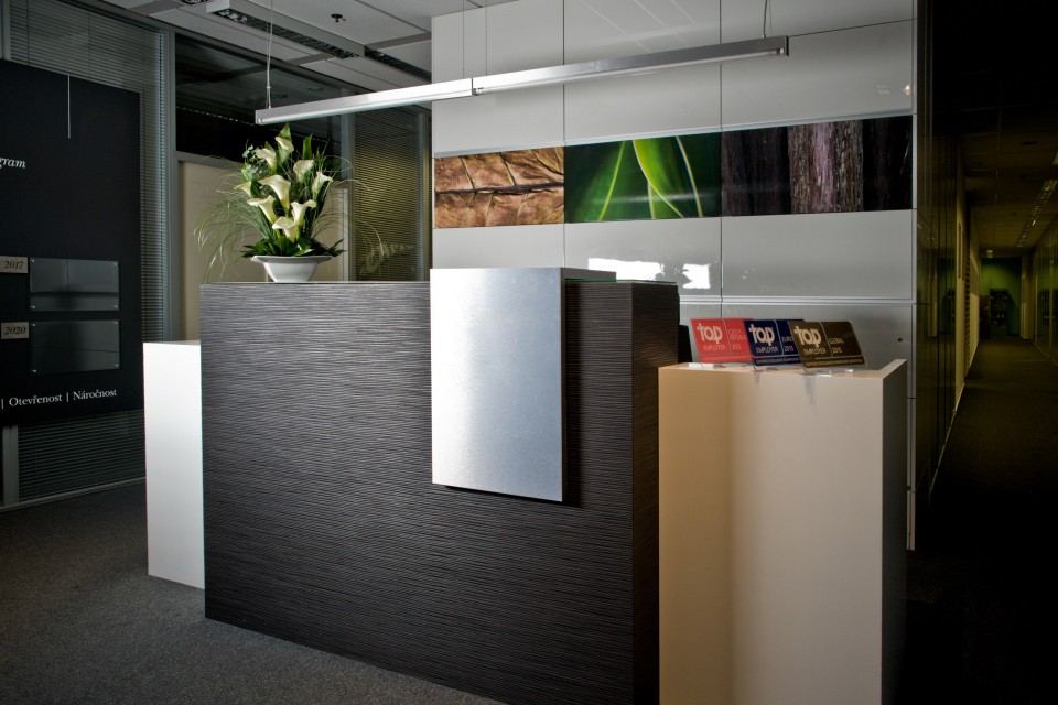 Celkové vybavení interérů společnosti květináči a rostlinami