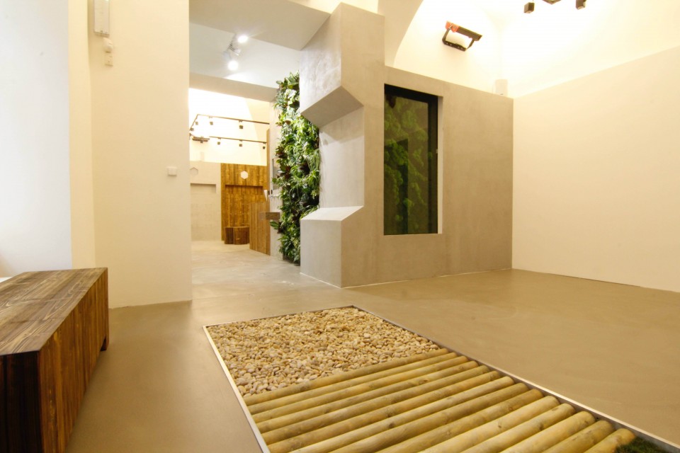 Z technických důvodů nebylo možné stěnu napojit na vodovodní řad - nevadí, systém Flower Wall připojení nepotřebuje. Zároveň není nutné instalovat spodní retenční nádrž na vodu - všimněte si tedy, že naše stěna může "růst" doslova od podlahy ke stropu.